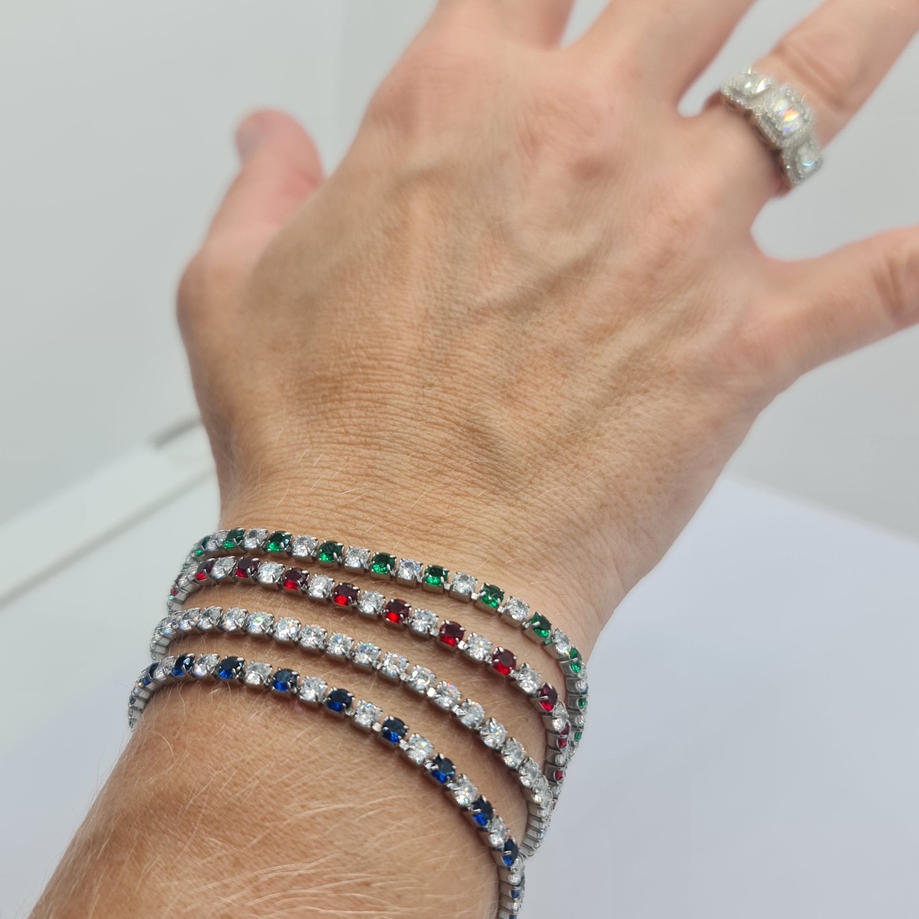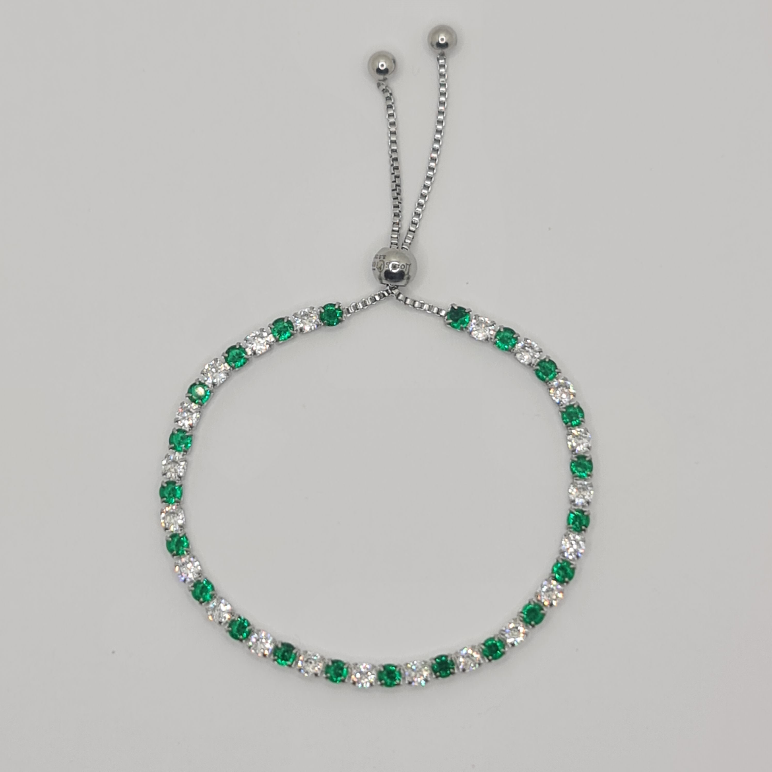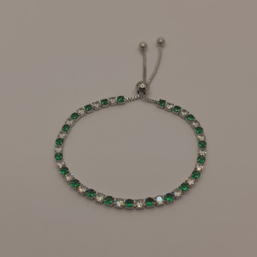 Bracciale in acciaio con zirconi di colore bianchi e verdi alternati qualità 5A diametro 3,0 mm.