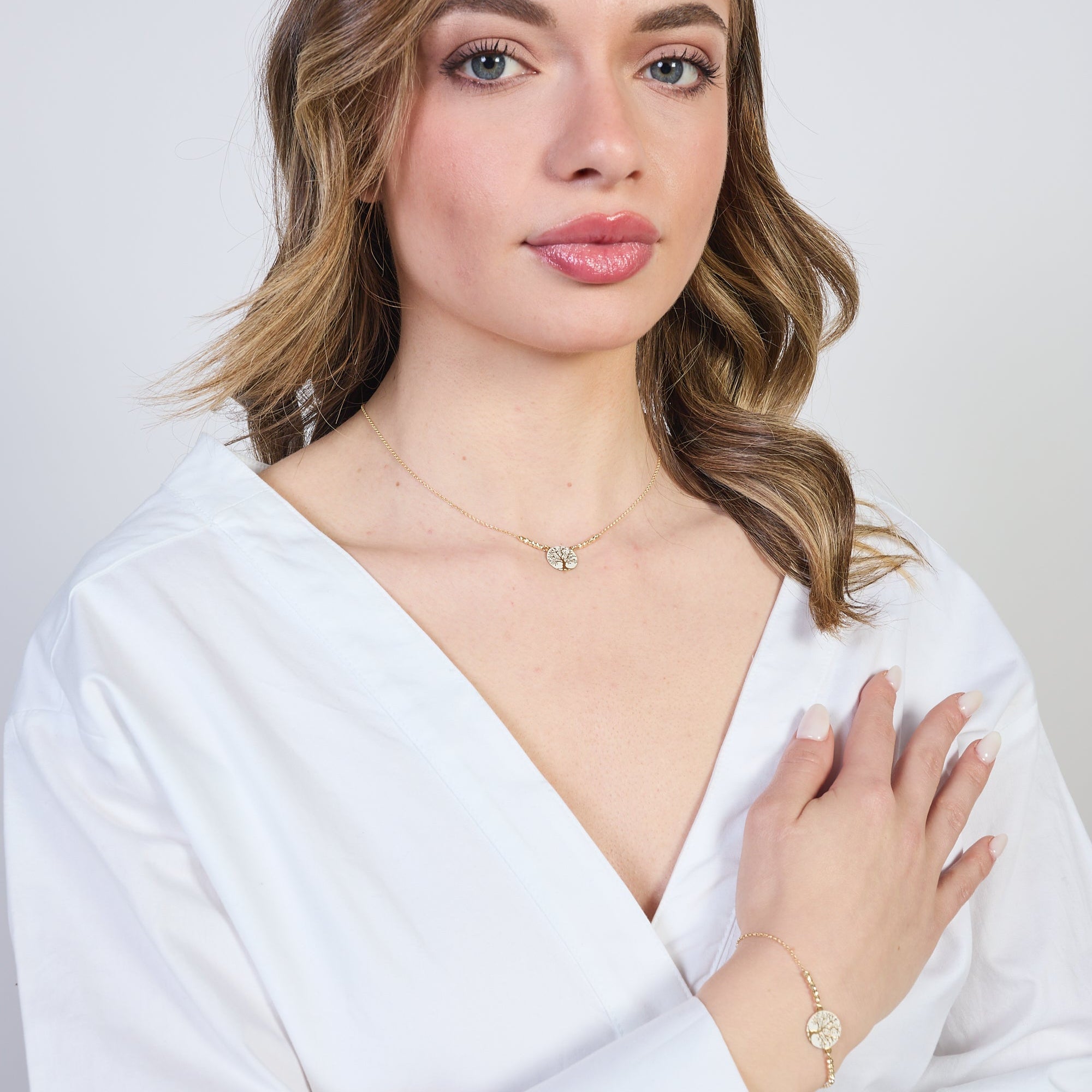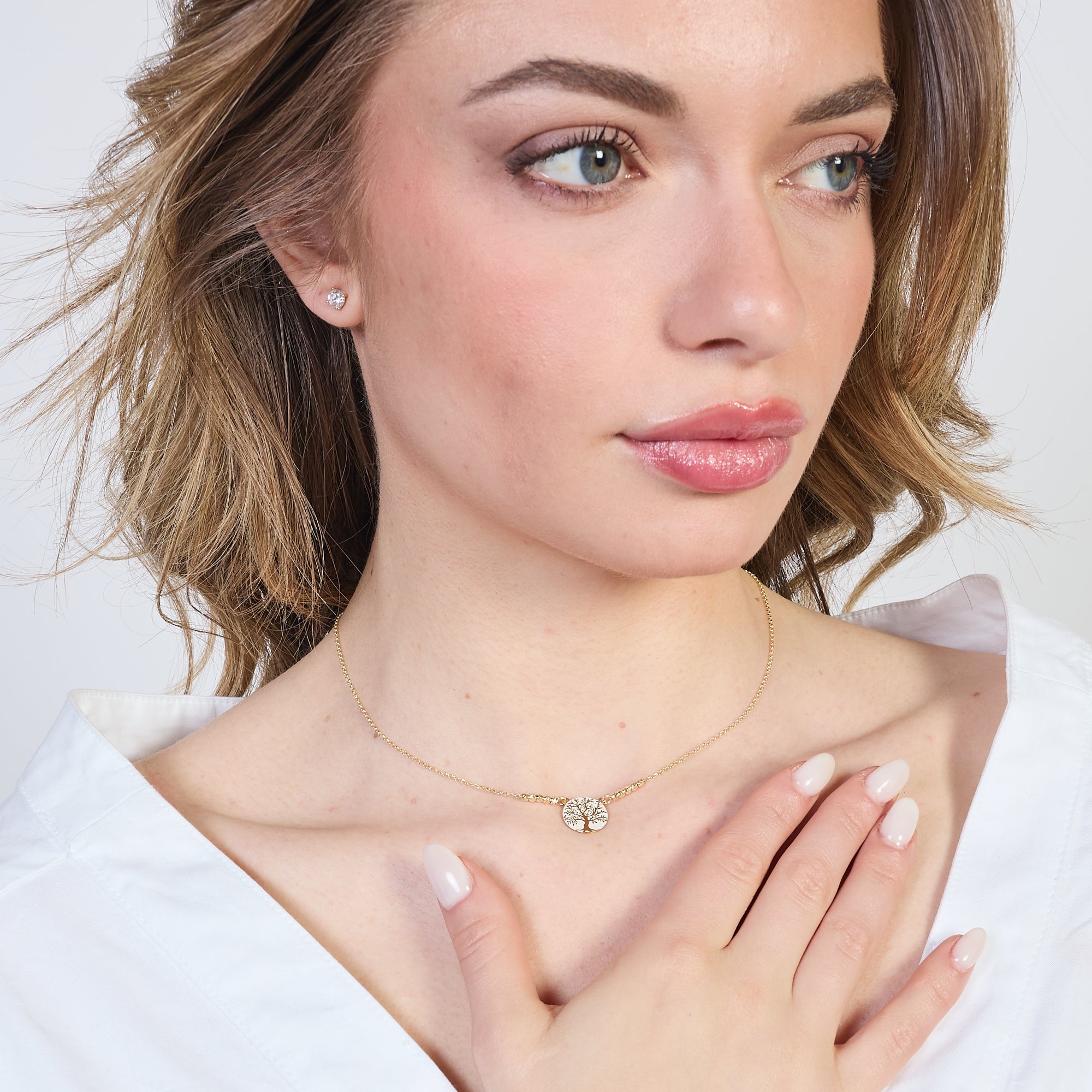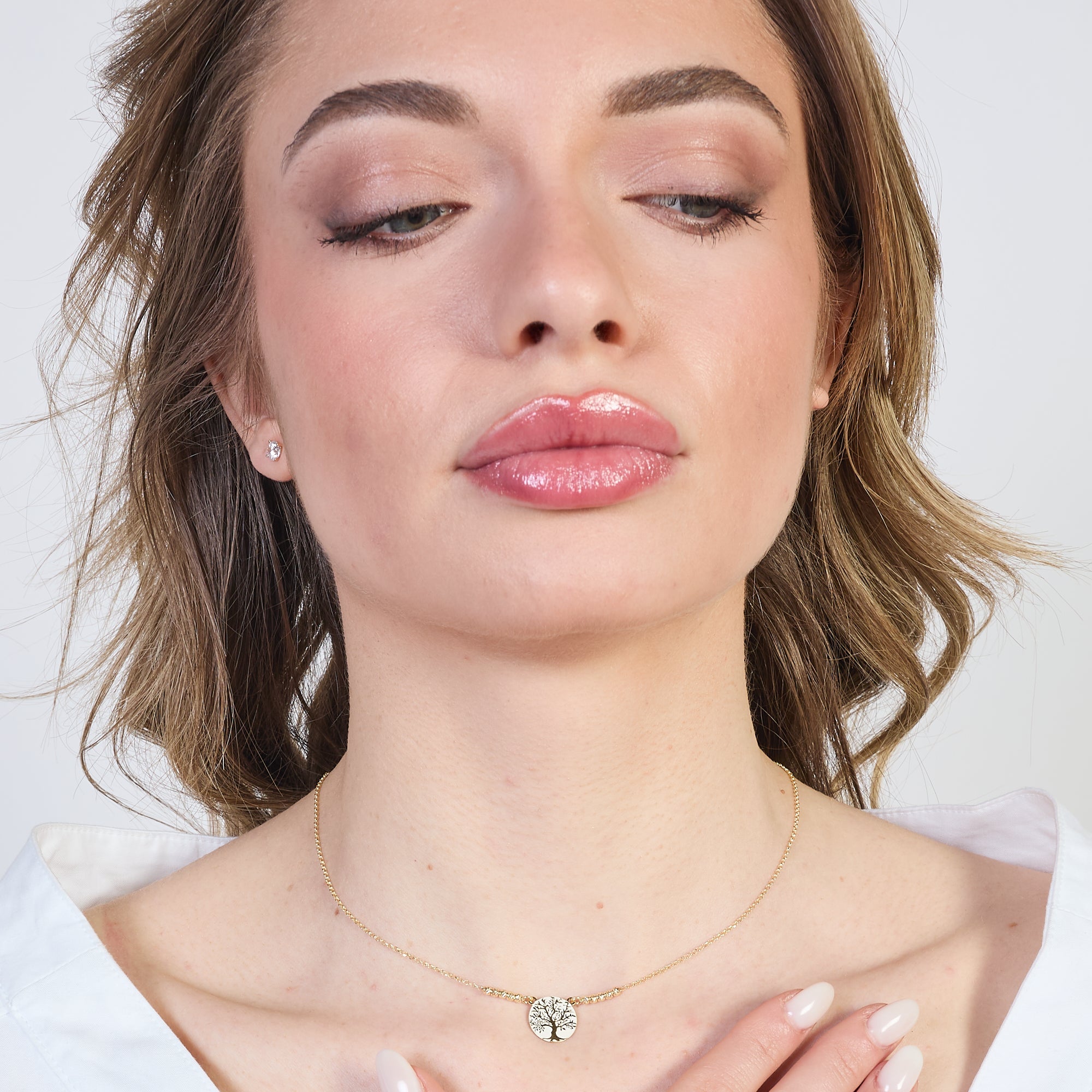 Collana argento dorato con sfere sfaccettate e albero della vita grande centrale