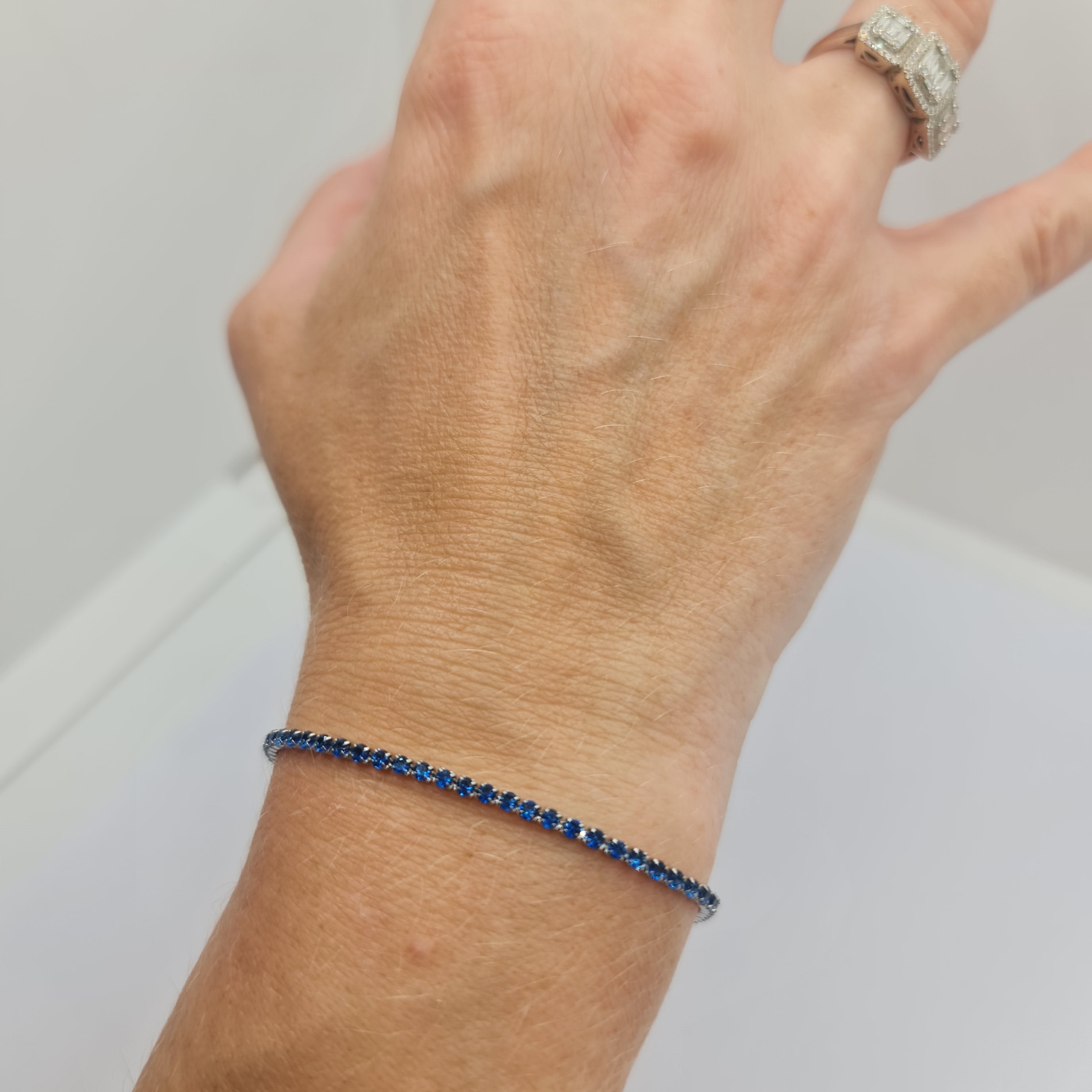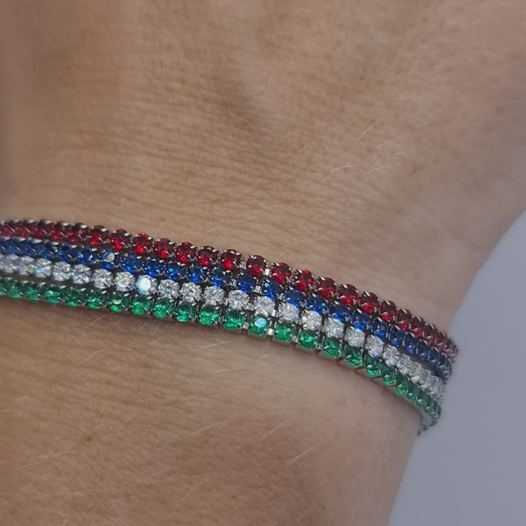 Bracciale in acciaio con zirconi di colore blu qualità 5A diametro 2,0 mm.