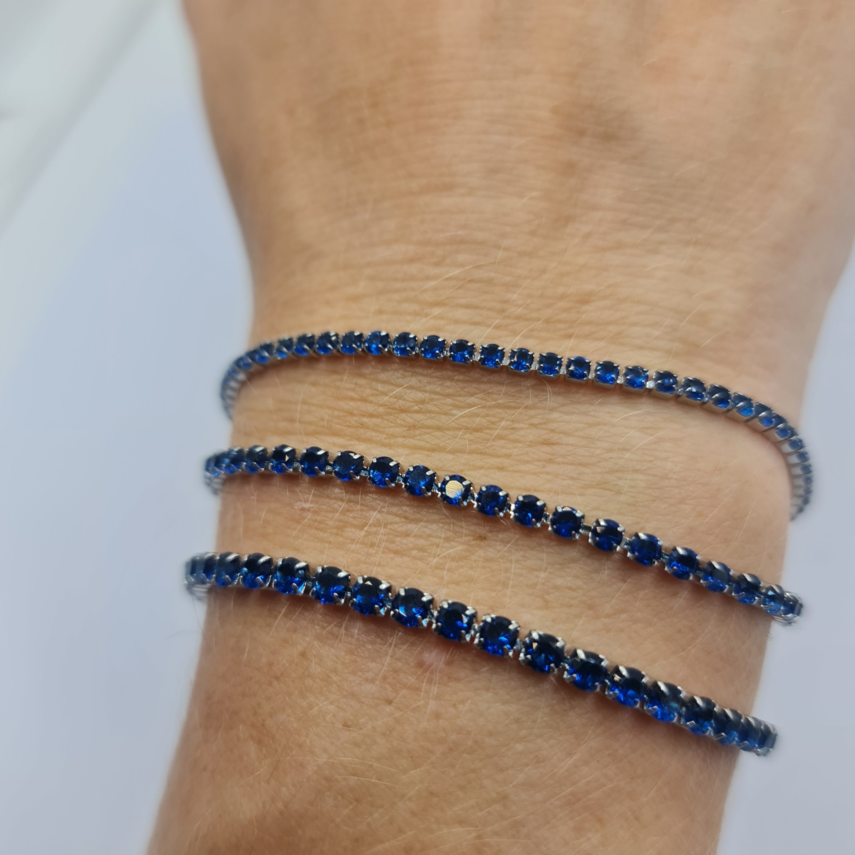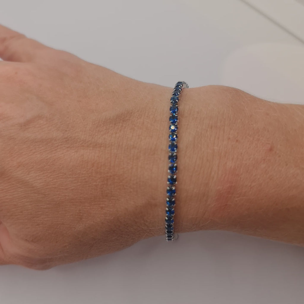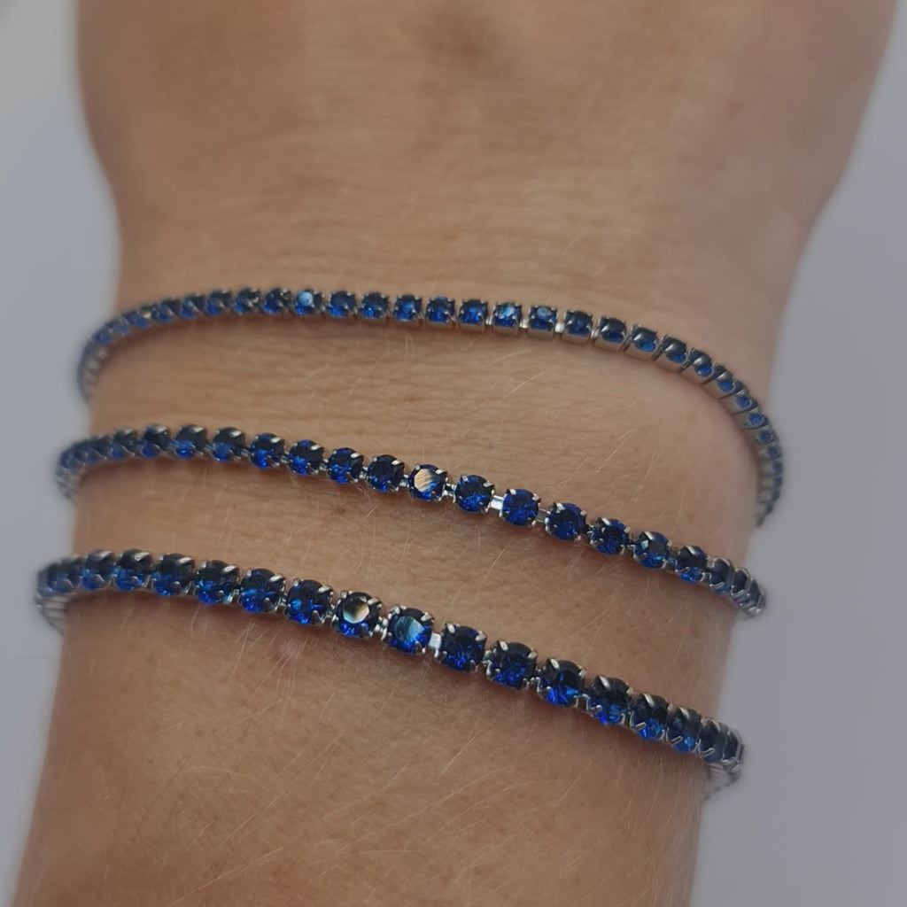 Bracciale in acciaio con zirconi di colore blu qualità 5A diametro 3,0 mm.
