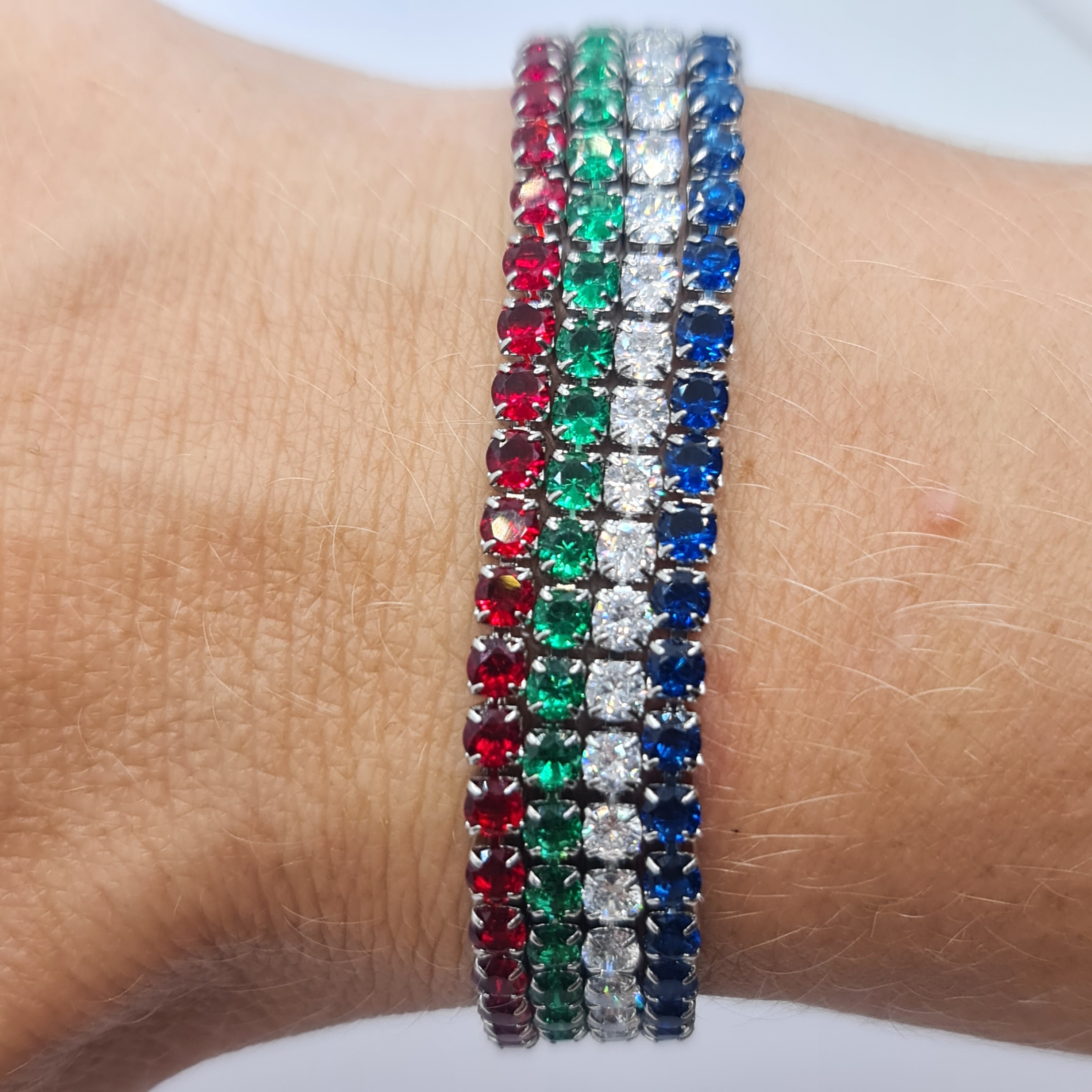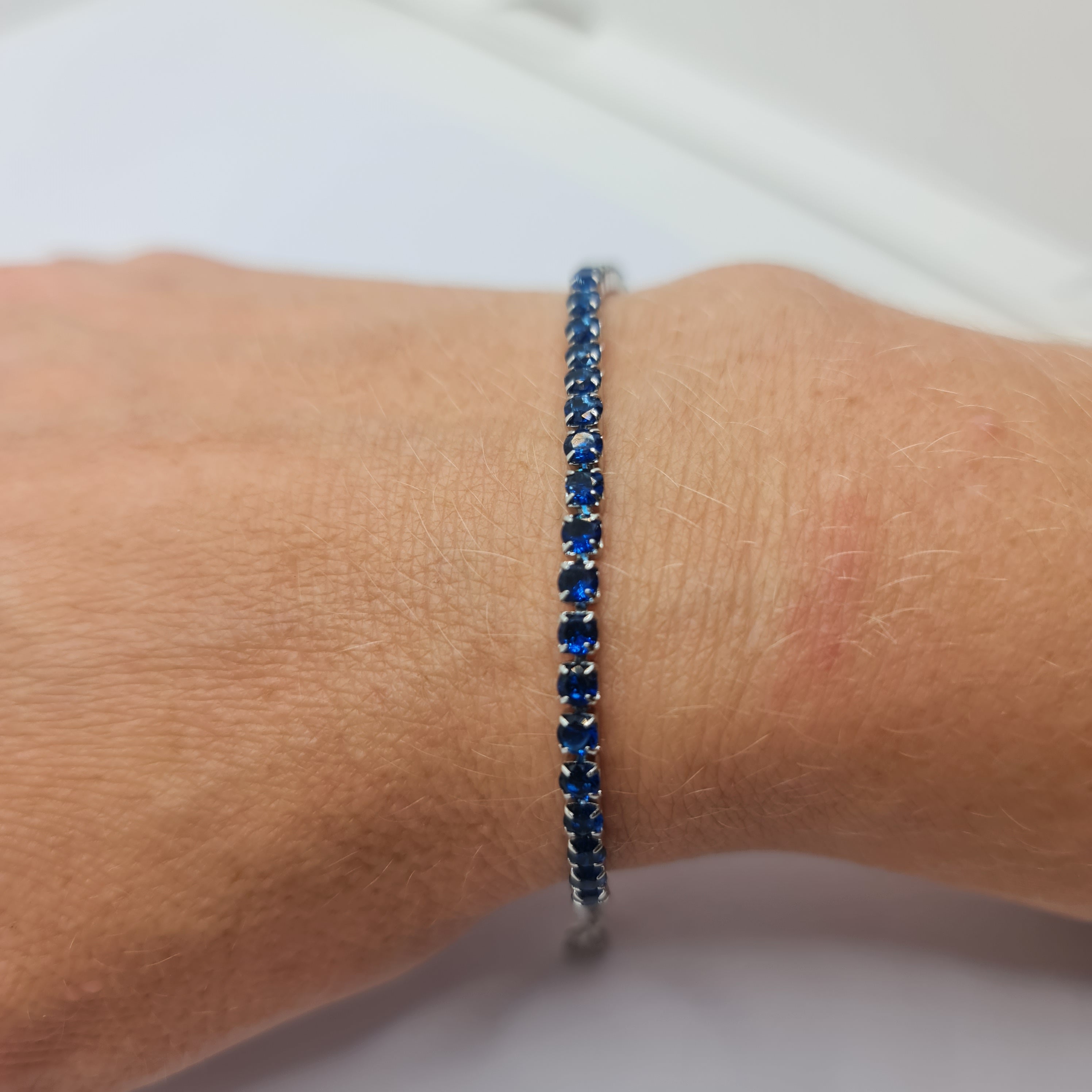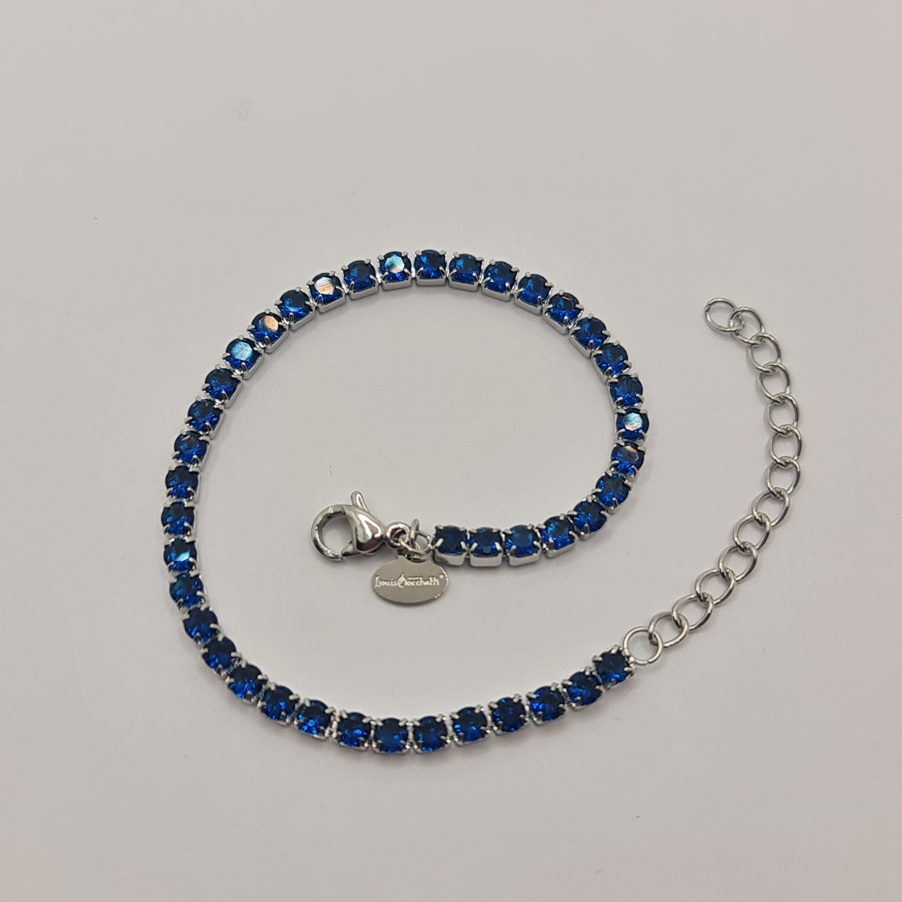 Bracciale in acciaio con zirconi di colore blu qualità 5A diametro 3,0 mm.